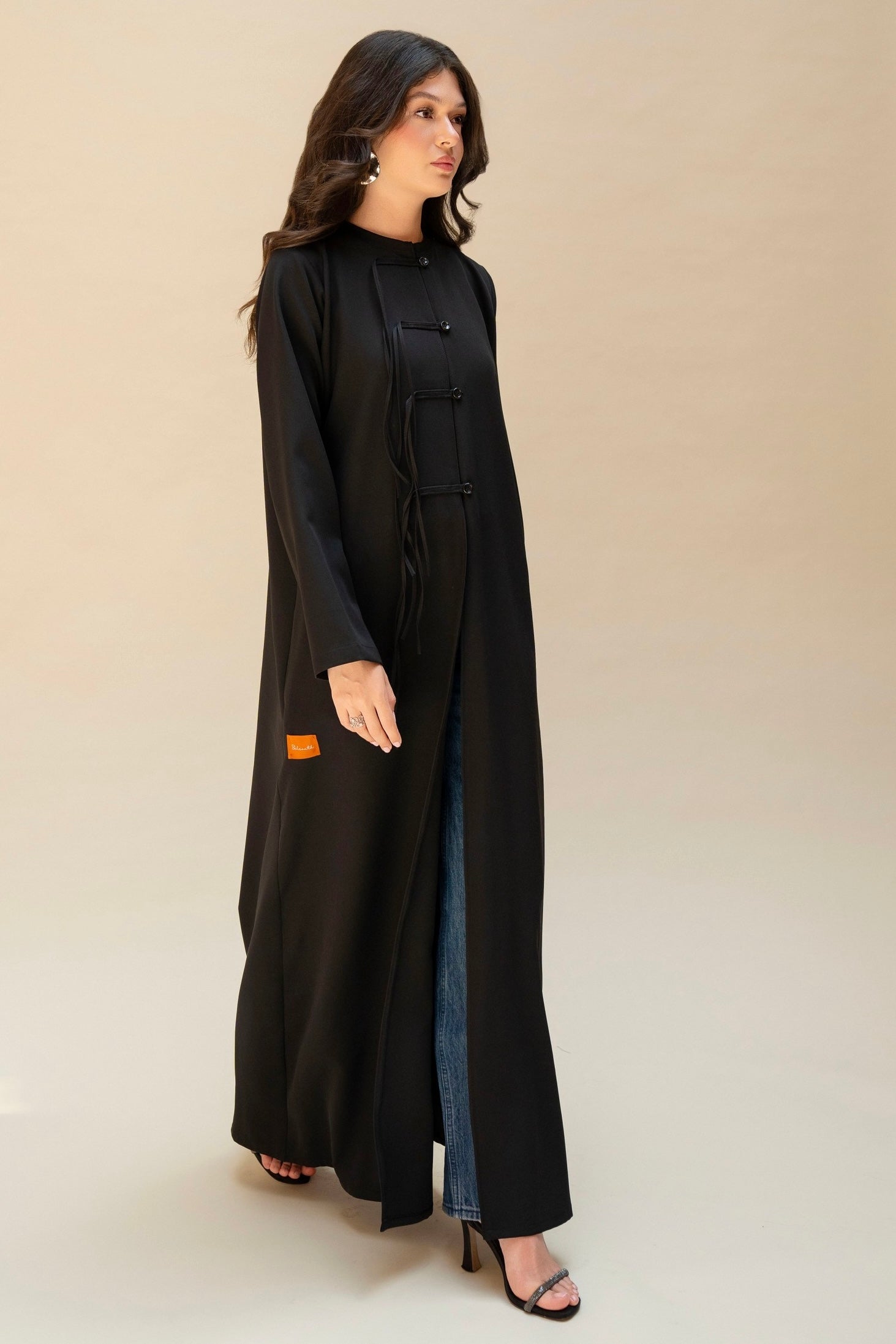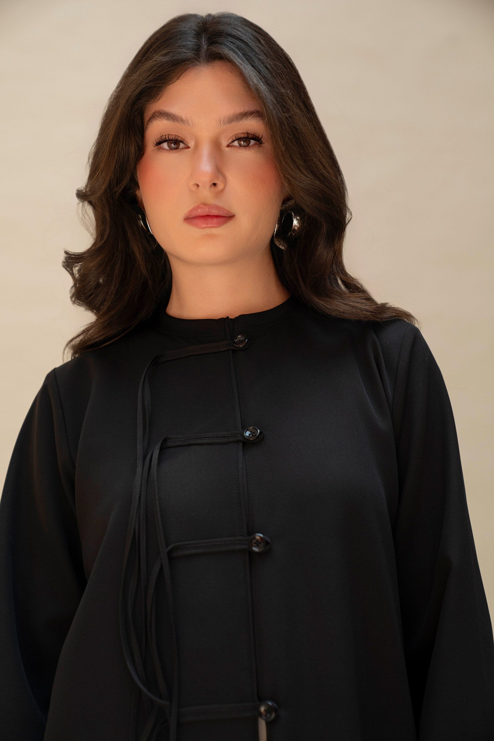 The Fourfront Abaya is a structured yet fluid abaya defined by its distinctive four-knot front closure—an intentional, modern take on traditional fastenings. With its clean neckline, elongated ties, and vertical symmetry, it creates a quiet statement of elegance and control. Part of the Serene Summer Dynasty collection, this piece embodies calm authority and thoughtful design, leading with subtle strength.