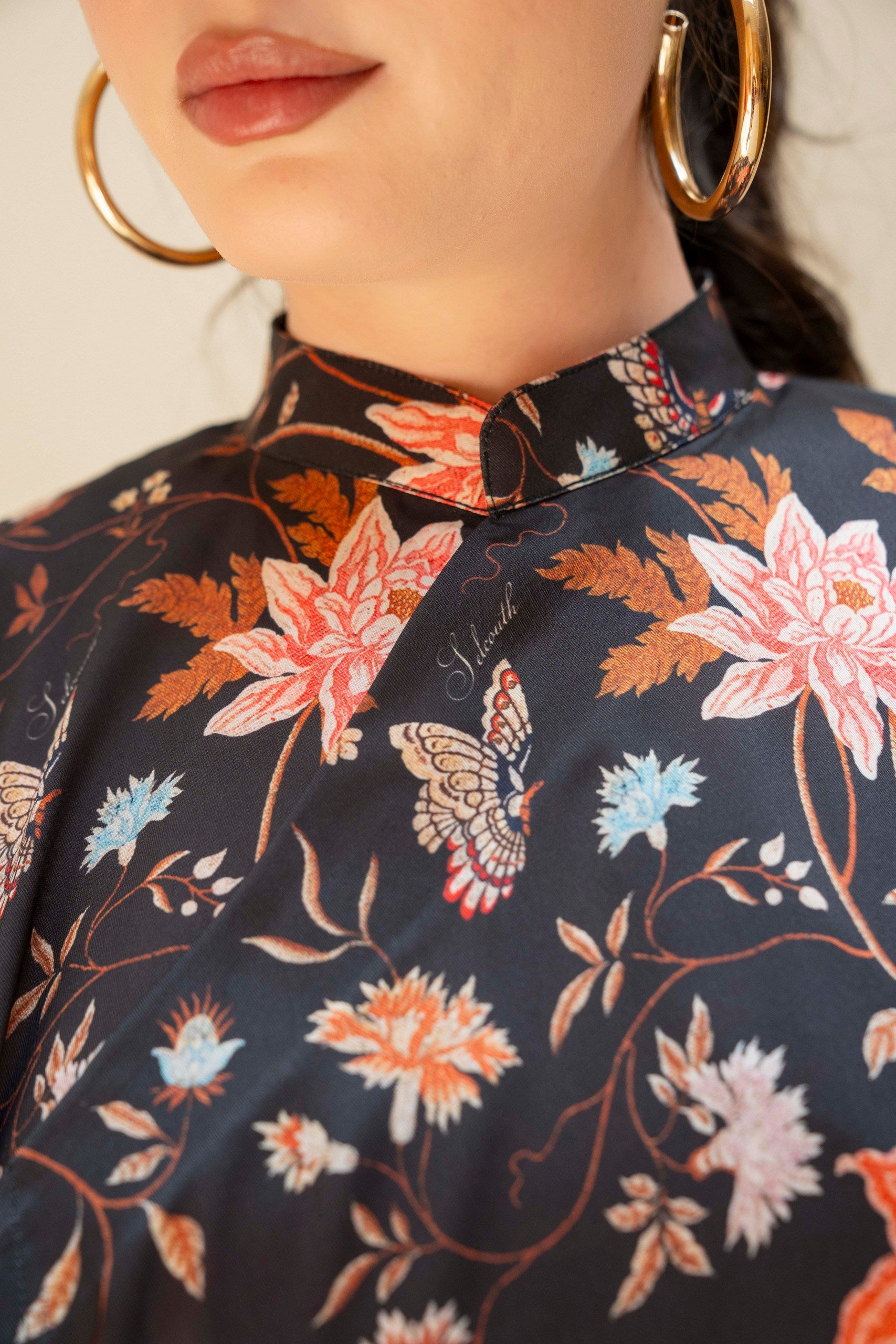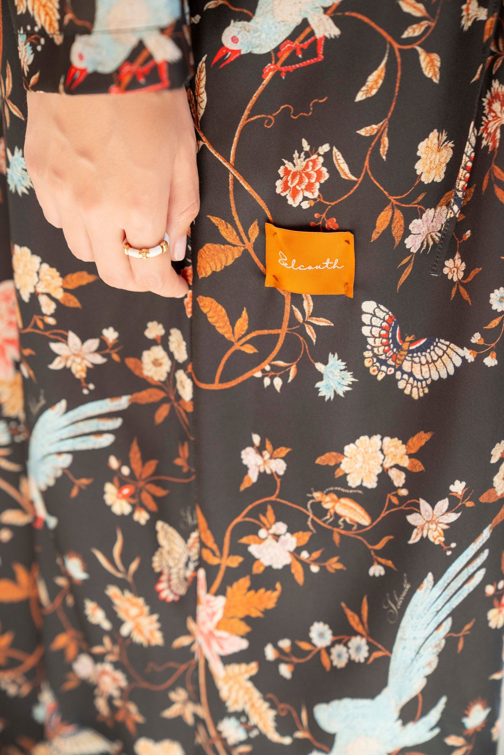 Introducing the Paradise Dynasty Abaya - a modest yet visually rich and regal piece featuring a birds of paradise design on fabric. Its elegant silhouette and mandarin collar exude sophistication, while the ribbons for closure add a trendy touch. An ode to ease and effortless style.